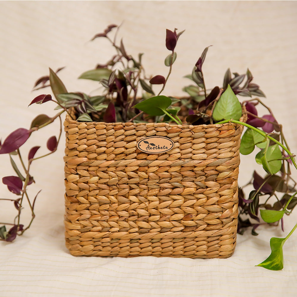 KEEP YOUR ESSENTIALS ORGANIZED IN STYLE WITH THIS BEAUTIFULLY HANDCRAFTED BOX WITH A LID, MADE FROM NATURAL WATER HYACINTH.