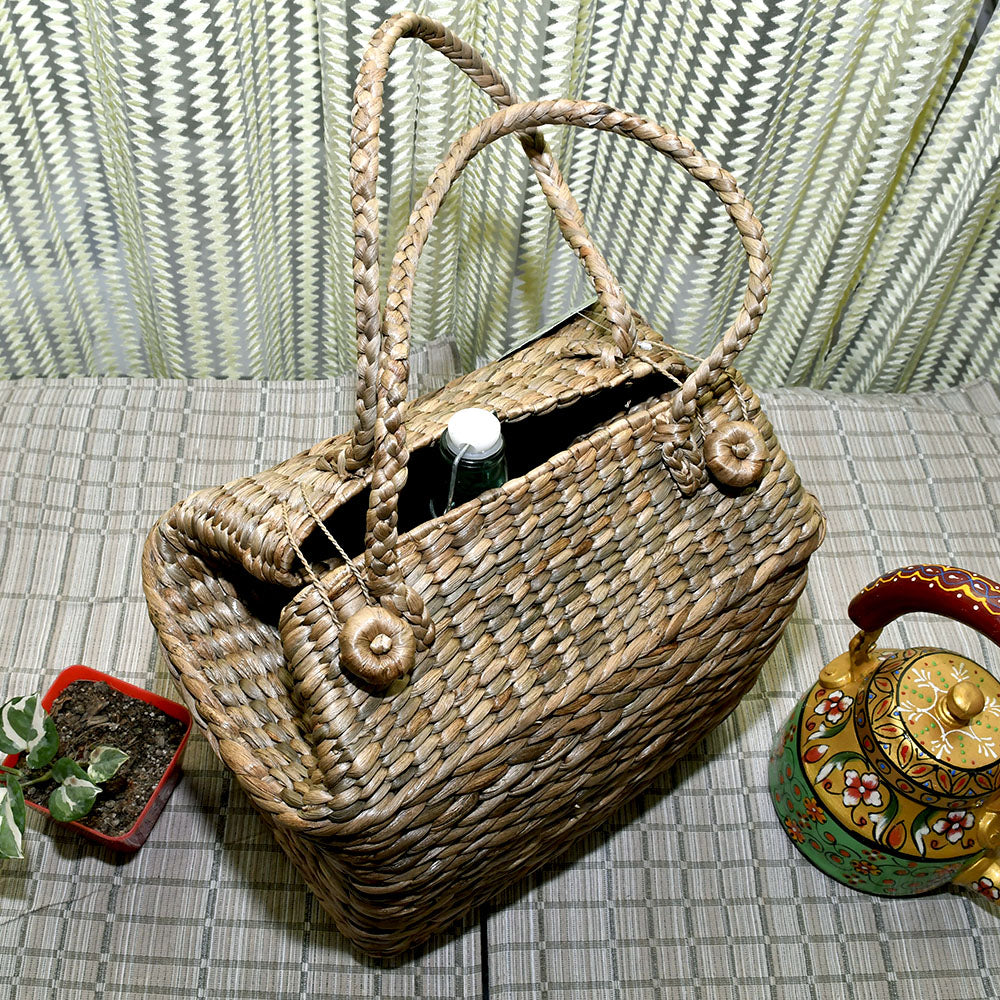 LUNCH BIG BAG WATER HYACINTH CARRY YOUR MEALS IN STYLE WITH THIS SPACIOUS LUNCH BAG, BEAUTIFULLY HANDWOVEN FROM ECO-FRIENDLY WATER HYACINTH. LIGHTWEIGHT YET STURDY, IT OFFERS AMPLE SPACE TO HOLD LUNCH BOXES, BOTTLES, AND SNACKS WITH EASE. THE NATURAL WEAVE GIVES IT A RUSTIC CHARM, WHILE ITS DURABLE DESIGN MAKES IT PERFECT FOR DAILY USE AT WORK, SCHOOL,OR PICNICS.